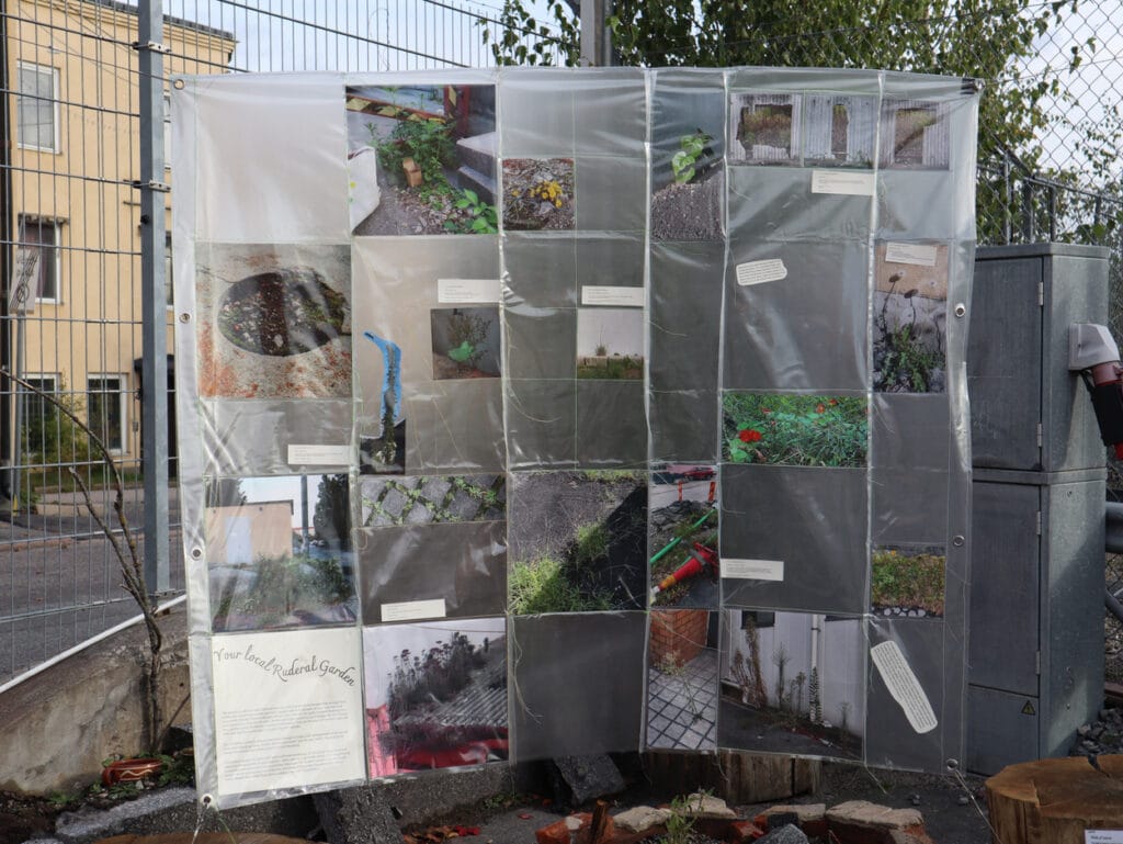 Temporary photo exhibition in the Ruderal Garden where Garden Loops asked people to submit photos of their local ruderal gardens through an open call.